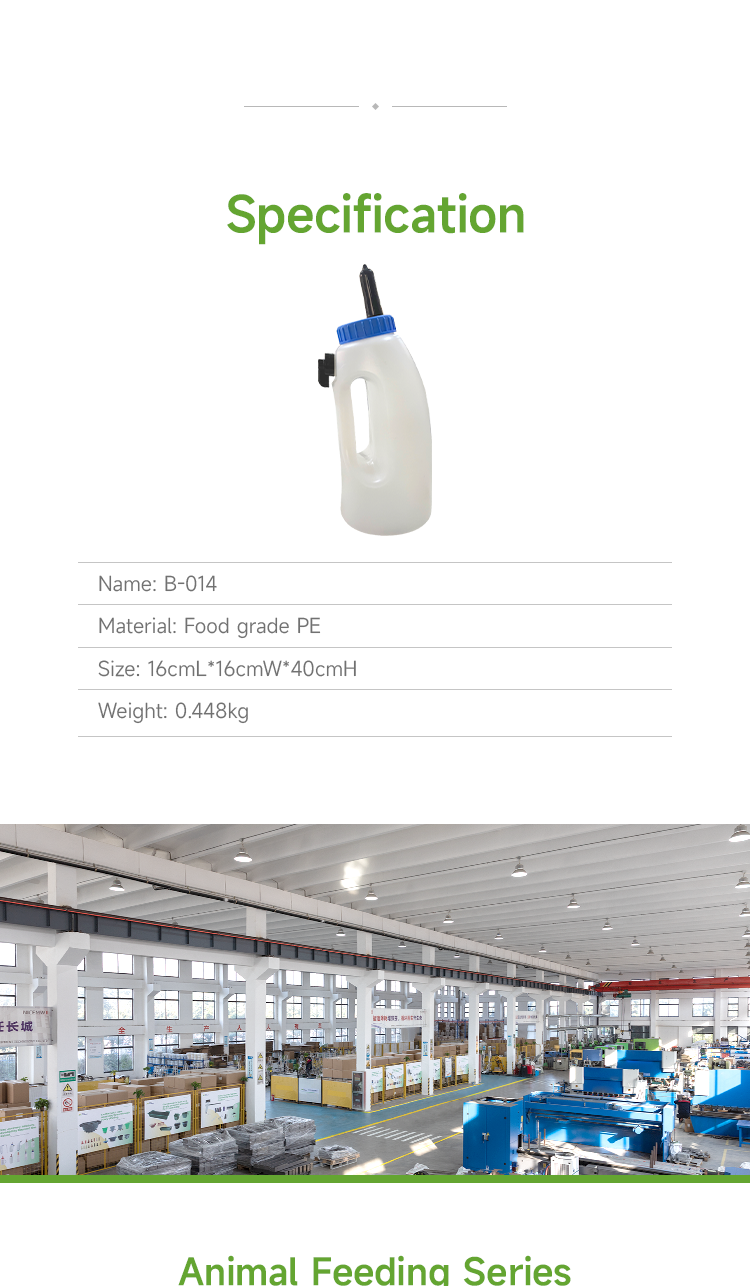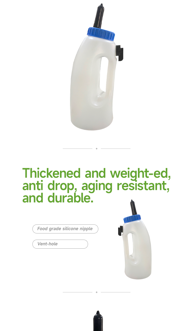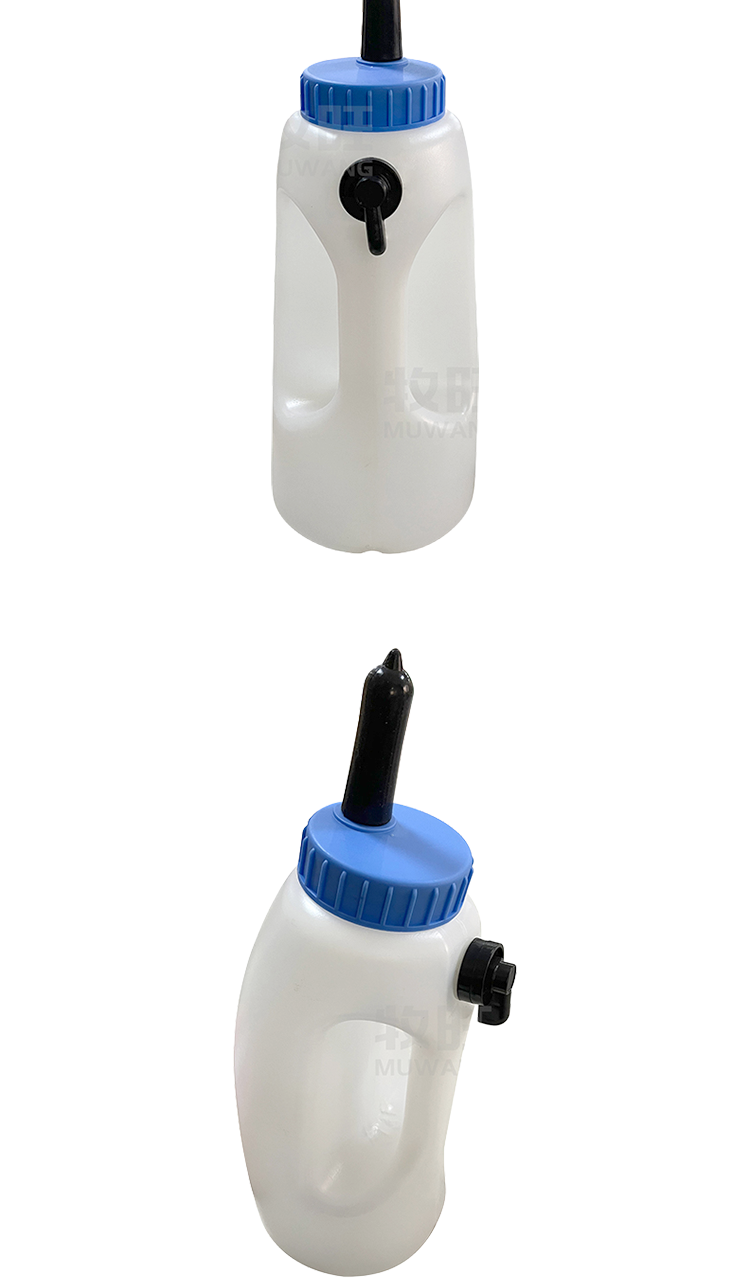 Calf feeding pot, 4L capacity, can control milk flow rate, made of food grade material, resistant to falling and durable · The 4L calf milk bottle is made of food grade PE material and is suitable for animal husbandry; · The animal milk bottle has a control valve that can adjust the milk flow according to the needs of the livestock; · Thickened handle, convenient for energy-saving feeding of calves; · 4L capacity, sufficient for daily consumption of calves, only needs to be filled once, allowing your calves to enjoy without the need for constant replenishment.