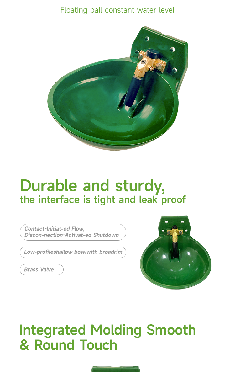 Cow drinking bowl, modified nylon plastic drinking bowl, UV resistant, contact water, resistant to low temperature and cold, acid and alkali corrosion, specially designed for breeding farms · Modified nylon drinking bowl for cattle, UV resistant, not easy to age, resistant to low temperature and cold, acid and alkali corrosion. Thickened bowl body, resistant to drops and durable. · Touching water can reduce the labor intensity of management personnel and improve water conservation rate. The bowl is smooth and easy to clean. · The scientific water flow rate and triggering mechanism avoid the problem of cows drinking too much or too little water. Material: Plastic