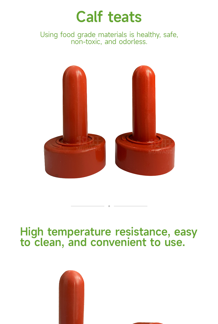 Food grade silicone nipple, silicone biomimetic nipple is soft and bite resistant, resistant to high temperature disinfection and does not contain bisphenol A, suitable for large-scale pasture use · Silicone nipple, with a thick texture and good tensile strength, thick and durable to extend its service life, and high flexibility; · Buckle it onto a bottle specifically designed for feeding animals, making it easy to breastfeed;