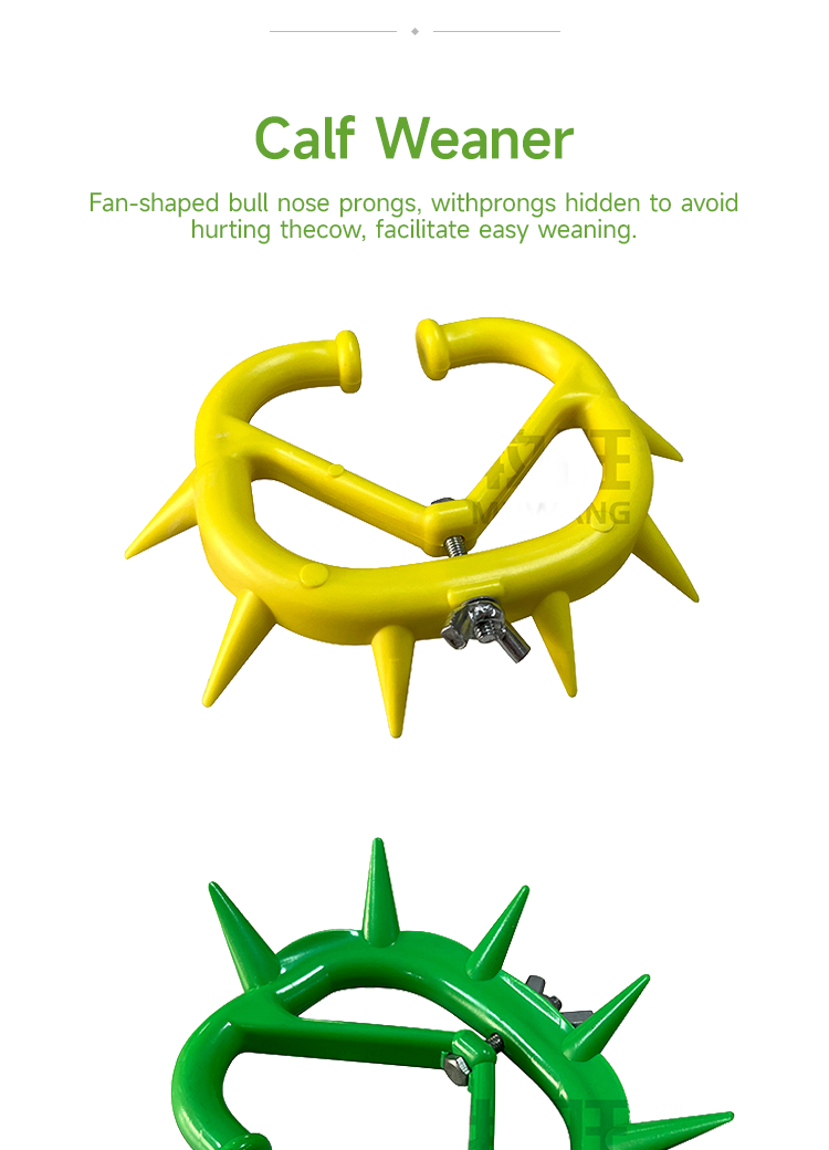 Plastic cow nose spikes help calves weaned, thickened PP material is not easy to break, compact and lightweight, not easy to fall off · Plastic cow nose spikes, thickened and reinforced, lightweight material; · Smooth hole wall without damaging the cow's nose; It can be easily and quickly installed by simply opening it with one hand; · Triangular structure design, uniform force distribution, stable structure; · Suitable for weaning management in pastures and behavioral correction of calves in large-scale breeding farms;