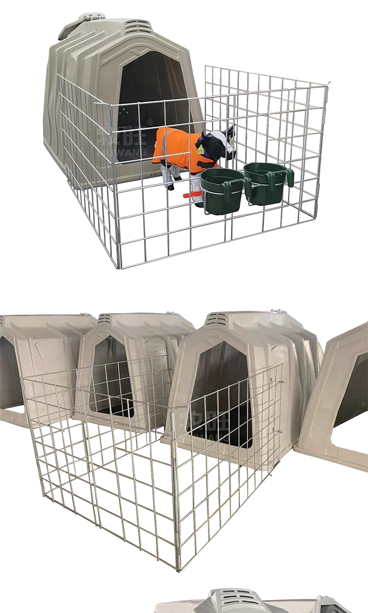 Calf Island is an independent feeding facility designed specifically for newborn calves. It is made of high-quality PP material, roll molded, and has good insulation and UV resistance functions, as well as ventilation design · An independent feeding system designed specifically for calves aged 0-6 months, using a high-density polyethylene integrated molding structure that combines windproof, moisture-proof, and UV resistant properties. · Ventilation design, the top and back of the calf island can be ventilated, making the internal ventilation of the calf island more reasonable; · Thickened hot-dip galvanized fence to provide ample activity space for calves;