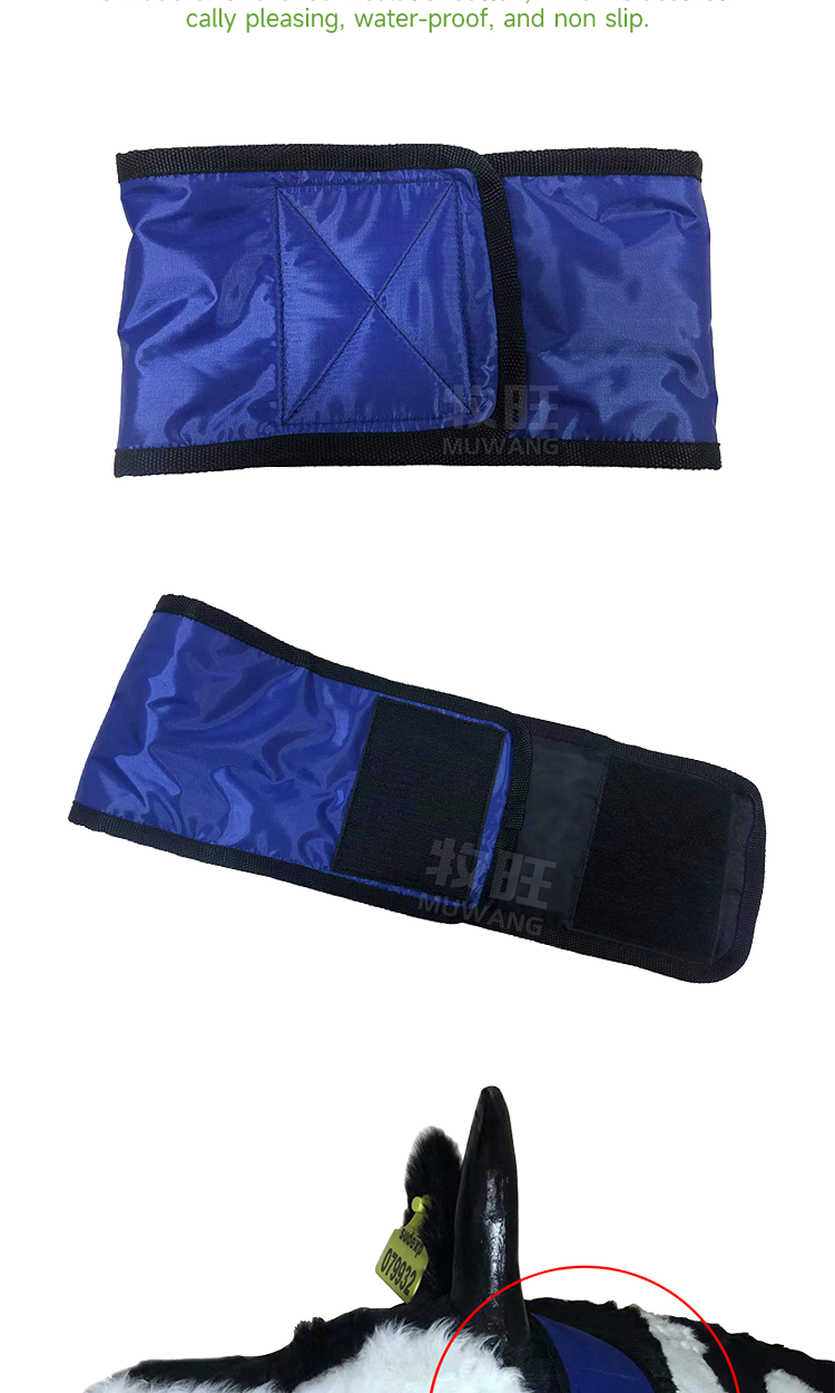 Calf cold collar, used to keep calves warm in cold weather, with thick Oxford cloth that is wear-resistant and waterproof A cold resistant scarf designed specifically for calves, made of thick waterproof Oxford cloth lined with warm cotton material, effectively resisting cold and low temperatures. Velcro adjustable design is suitable for calves of different sizes. Taking warm measures can reduce the incidence rate of calf pneumonia. It is an essential equipment for calf care in winter.
