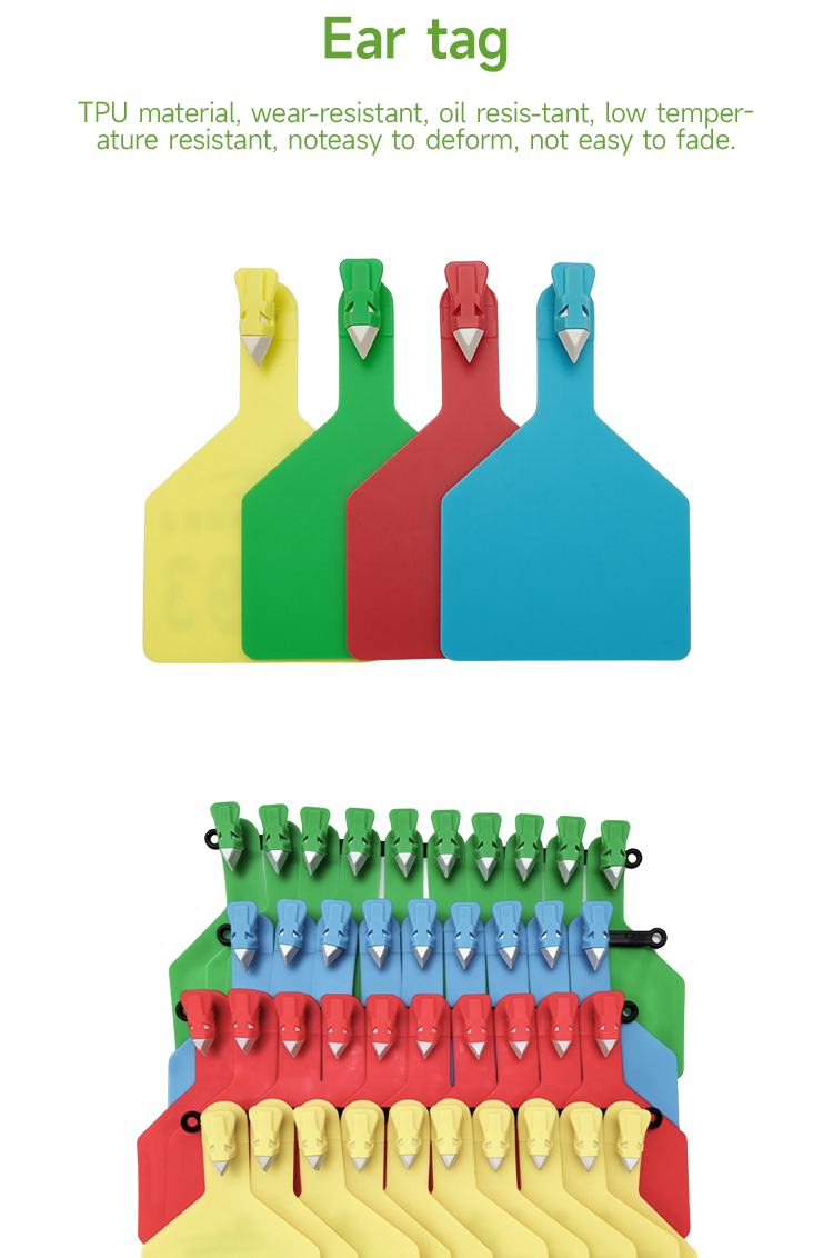 Farm specific ear tags, animal marking tools, TPU ear tags, sun resistant, waterproof and crack resistant, farm specific animal ear tags · TPU ear tags are soft and colorfast, sun resistant and waterproof without cracking. They are specifically designed for farm animals and facilitate animal identification, helping with ranch information management; · TPU material ear tags are resistant to low temperatures, extreme cold, and detachment, allowing for quick marking and reducing animal discomfort; Colorful and highly recognizable. Even in harsh environments, it is not easy to fade or deform; · Lightweight, reducing pressure on animals; · Very suitable for cows, goats, pigs, etc;