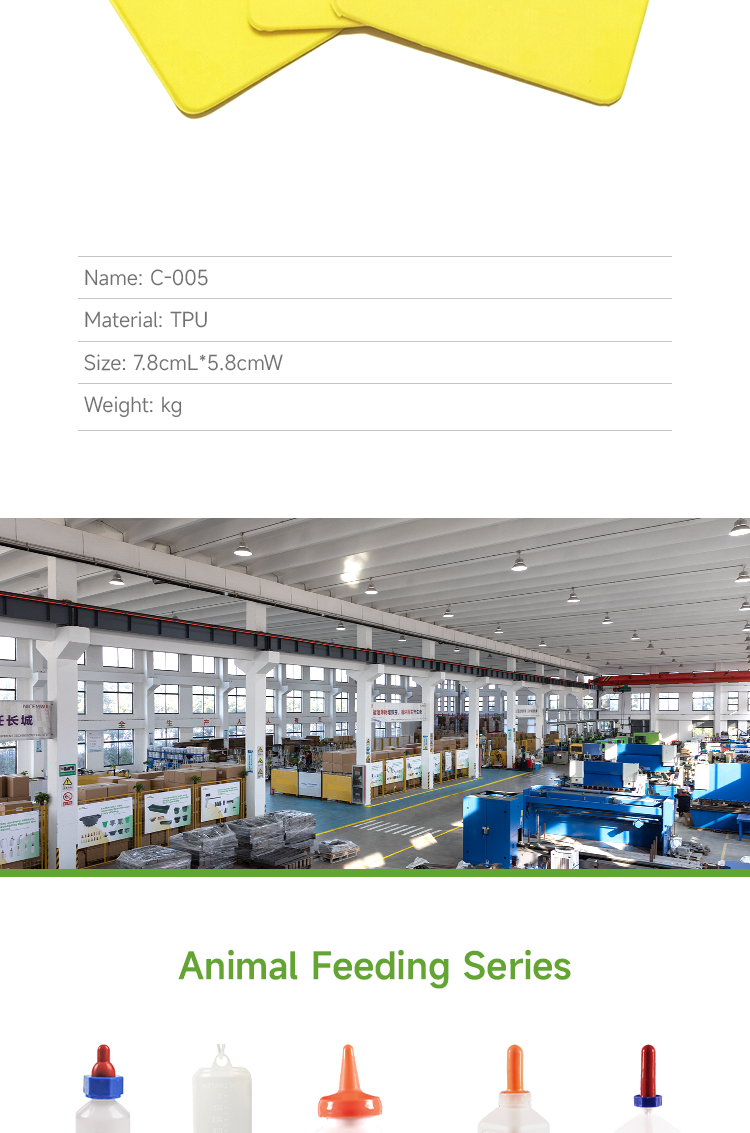 Farm specific ear tags, animal marking tools, TPU ear tags, farm specific animal ear tags · TPU ear tags are soft and do not fade, TPU ear tags are sun resistant, waterproof, and do not crack. They are specifically designed for farm animals and facilitate animal identification, helping with farm information management; · TPU material ear tags are resistant to low temperatures, extreme cold, and detachment, allowing for quick marking and reducing animal discomfort; Colorful and highly recognizable. Even in harsh environments, it is not easy to fade or deform; · Lightweight, reducing pressure on animals; · Very suitable for cows, goats, pigs, etc;