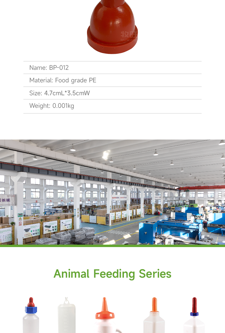 Silicone nipple for calves, made of food grade material, can be sterilized at high temperatures · Universal nipple, can be used on bottles or buckets; · For calves that cannot suck, they can be trained to establish a sucking reflex through pacifiers; · The pacifier can simulate natural sucking, ensuring that lambs consume sufficient milk while reducing the risk of contamination;