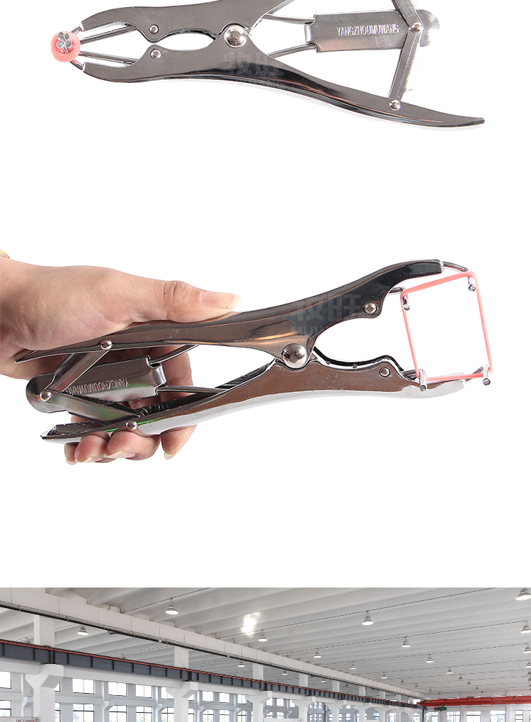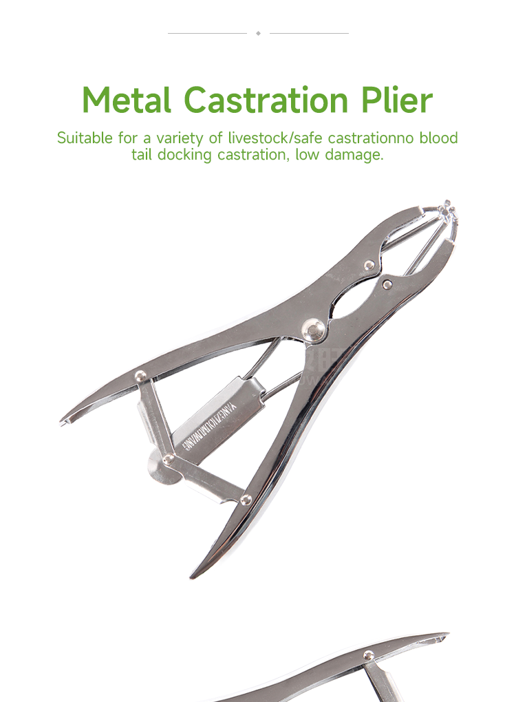 Metal expansion pliers, used for pig and sheep tail cutting, are a livestock tool that helps piglets quickly castrate and cut their tails, reducing bleeding · The expansion clamp used for piglet tail cutting is a livestock tool that uses the hook design of the clamp to wrap an elastic rubber ring around the animal's tail, using elasticity to block blood circulation, allowing the tail to naturally fall off after 7-15 days; · The hook design has strong elasticity; · Zinc alloy material is more corrosion-resistant and wear-resistant, with a long service life, suitable for large-scale breeding farms;