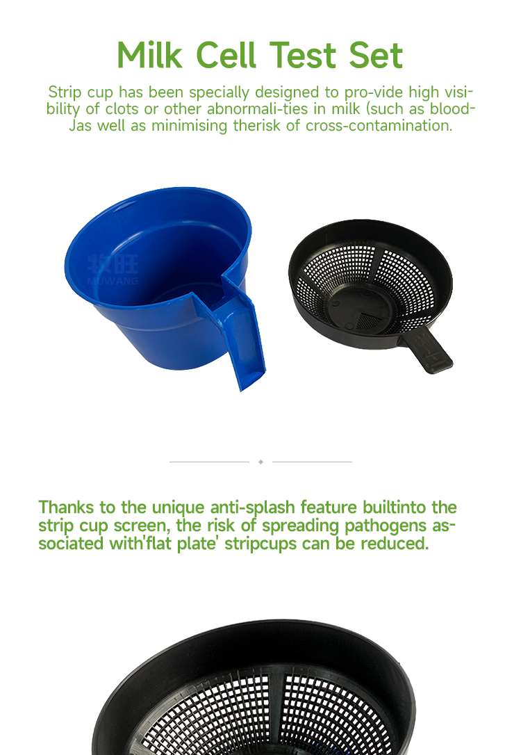 Three milk cups for cows, mastitis testing cup, milk filtering cup · Three milk processing cups, cow mastitis detection cup, used to collect the first few milks (containing high bacterial content) of cows during milking to avoid contaminating subsequent milk, made of food grade material that is corrosion-resistant and easy to clean · Three milk processing cups are used to observe whether there are clumps, flocs, or watery milk in the milk, and to detect mastitis in cows; · Food grade materials are safe and hygienic, with large diameters that are easy to clean; High quality filters effectively monitor whether there are any abnormal situations in milk;