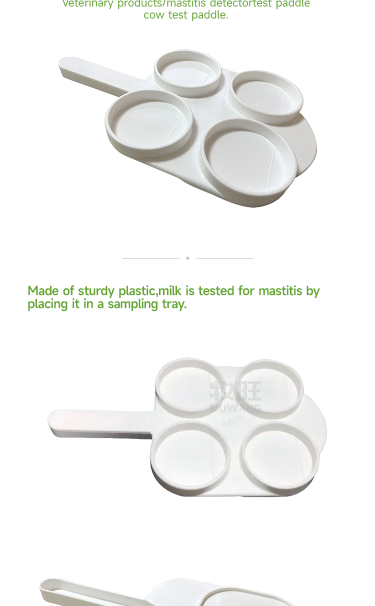 Cow mastitis detection tray, a standardized sampling device designed specifically for ranches, quickly collects milk samples for testing · Grid design can collect multiple sets of samples simultaneously to avoid cross contamination; · Supporting detection reagent disk, supporting screening of indicators such as somatic cell count and antibiotic residue; · Food grade PP material, corrosion-resistant and easy to clean, ensuring that the sample is not contaminated; Support high-temperature disinfection.