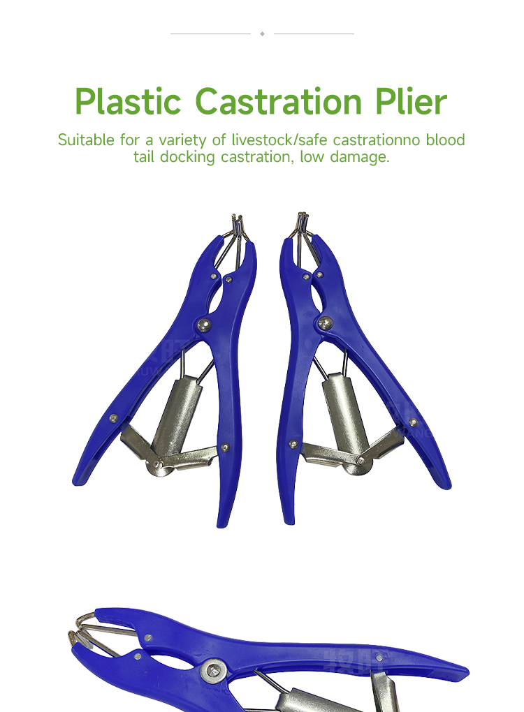 Expansion clamp, used for pig and sheep tail cutting, is a livestock tool that helps piglets quickly castrate and cut their tails, reducing bleeding · The expansion clamp used for piglet tail cutting is a livestock tool that uses the hook design of the clamp to wrap an elastic rubber ring around the animal's tail, using elasticity to block blood circulation, allowing the tail to naturally fall off after 7-15 days; · The hook design has strong elasticity; · Corrosion and wear resistance, long service life, suitable for large-scale breeding farms;