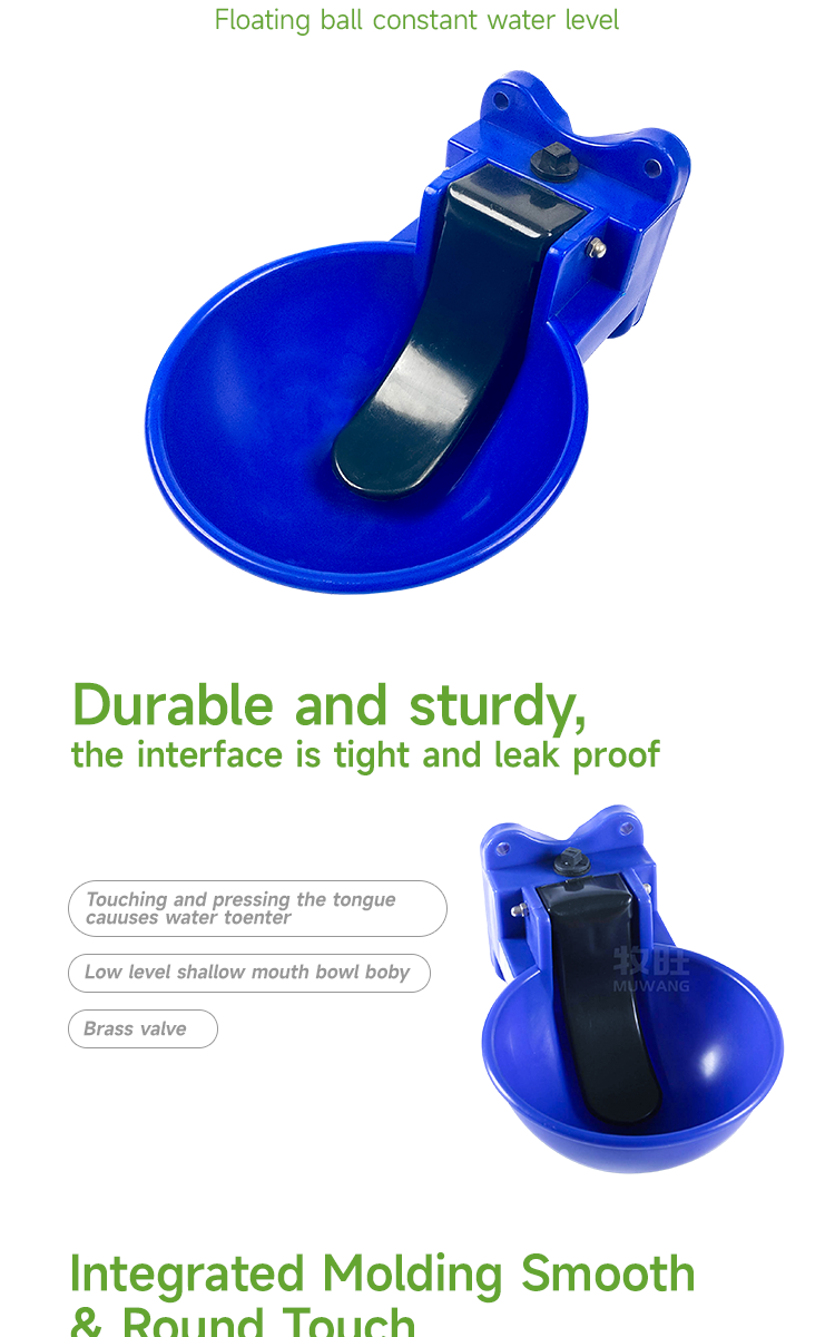Plastic drinking bowls for animals, thickened plastic that can resist UV rays and automatically fill with water · Plastic cow drinking bowl, modified nylon cow drinking bowl, UV resistant, not easy to age, resistant to low temperature and cold, acid and alkali corrosion. Thickened bowl body, resistant to drops and durable. · Touching water can reduce the labor intensity of management personnel and improve water conservation rate. · The bowl body is smooth, avoiding dirt residue and bacterial growth. · The scientific water flow rate and triggering mechanism avoid the problem of cows drinking too much or too little water.